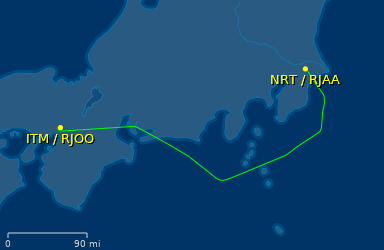 本日の1レグ目は、JL3004 伊丹→成田。