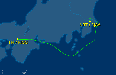 Track Japan Airlines (JL) #3004 flight from Osaka Int'l (Itami) to Narita Int'l