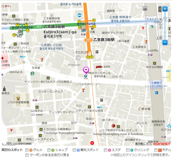 乙支路(ウルチロ)3街駅からすぐですが、明洞からも余裕で歩けます。