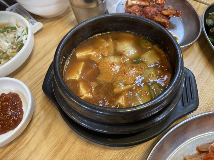 テンジャンチゲ(ちょい辛味噌汁)が付いてて、この前のお店よりもいいかなと思いました。