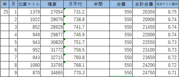 だいたい1マイル=2円と言われていますので、毎月280マイルぐらいはほしいところ。