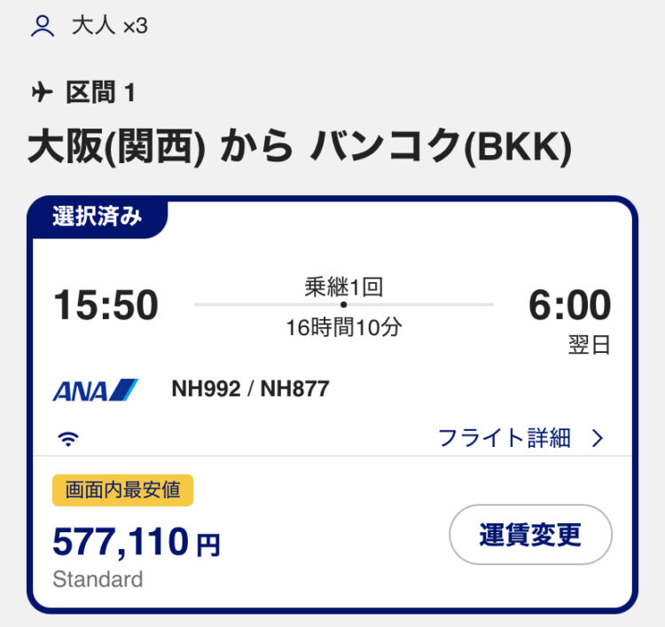 日本➡バンコクはANAで。