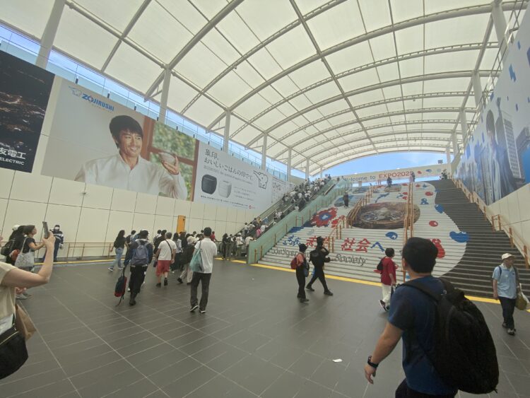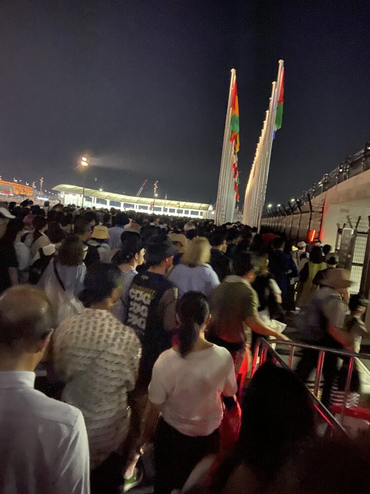 平日なのにすごい人が夢洲駅へ。