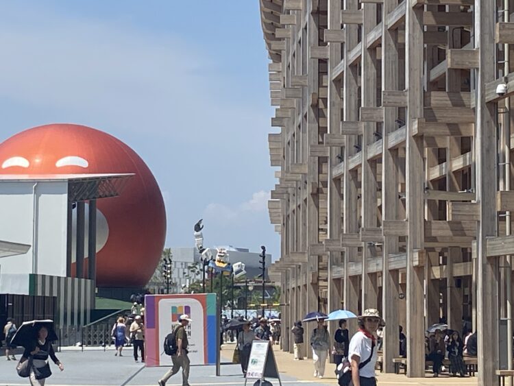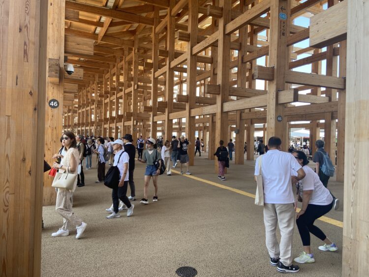 今日は最高気温34℃らしいですが、大屋根リングの下は風が通ってまぁまぁ過ごしやすい。