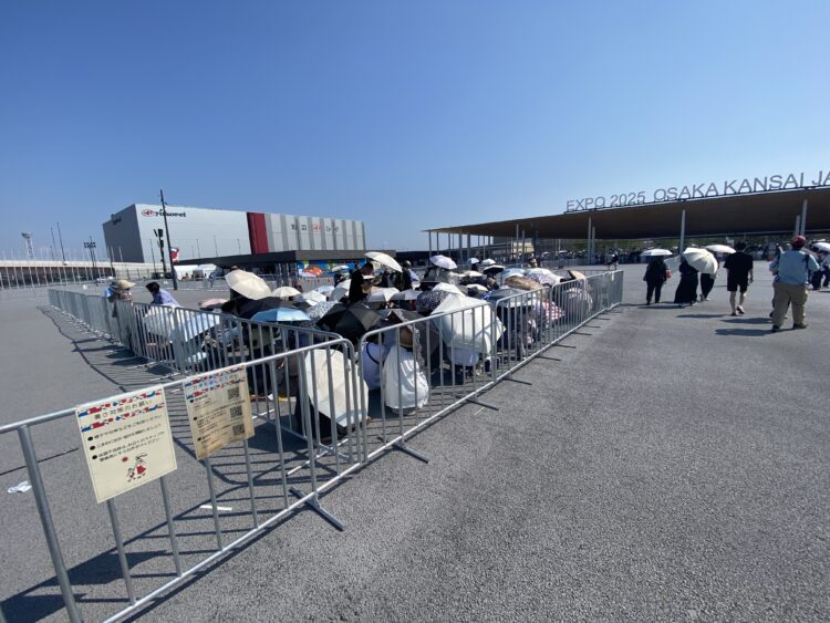 パビリオンの前にテントあるけど、そこにたどり着くまで日傘なかったらヤバい。