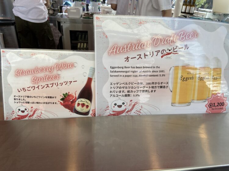 オーストリアのビール(エッケンベルグ 1,200円)といちごワインスプリツァー 1,000円)