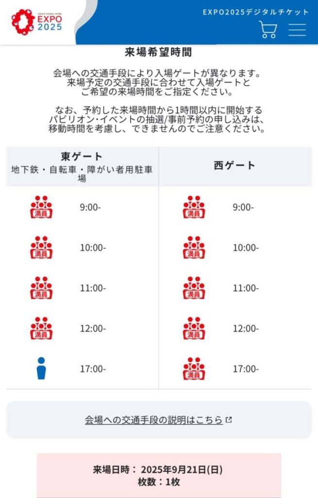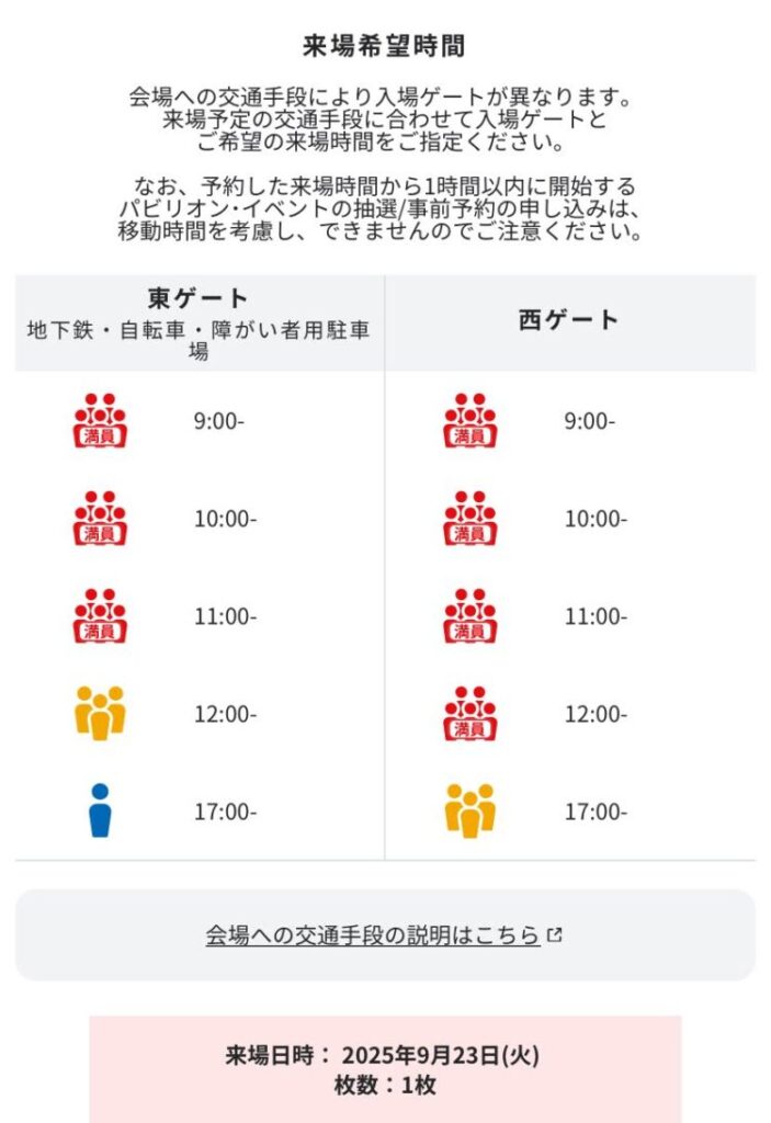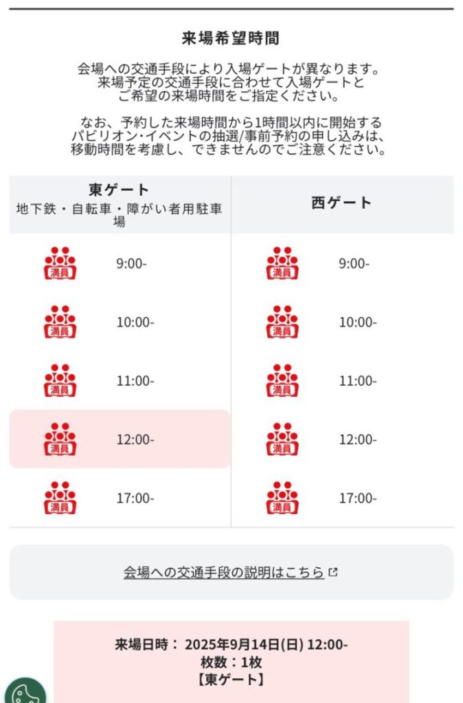 何とか9/23(火・祝)の東ゲート12:00取れました。
