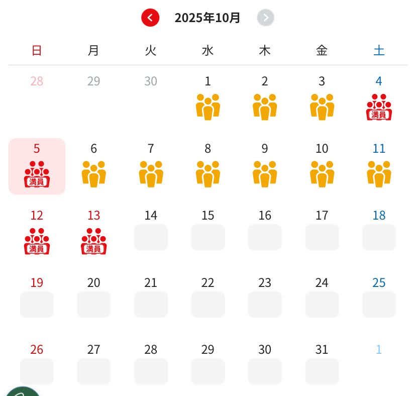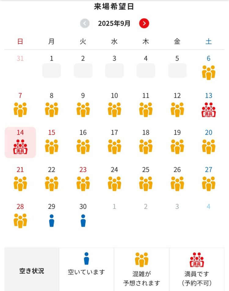 9/7のキャンセルした枠は、再来週にしようと予約画面開いたらこんな感じ😅