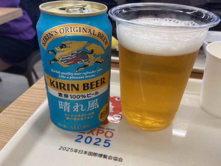 缶ビールが8/17は400円だったのに、万博あるあるで500円に値上がり (プラカップは持参)