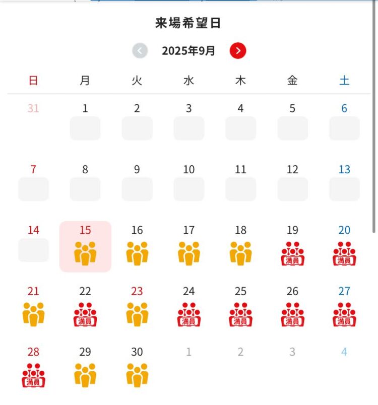 17:00を過ぎると、12:00予約している来週9/14(日)がついに満員に!