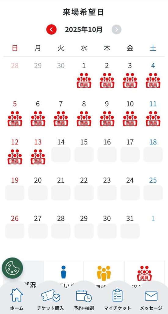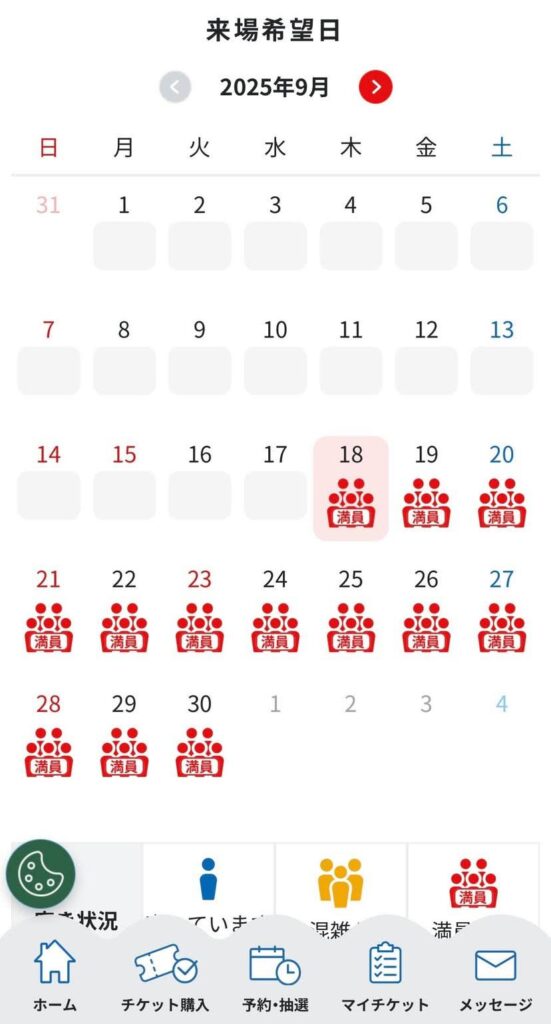 9/23に万博に行った後、通期パスが2枠余ってるんだけど、9/18以降もう満員で、