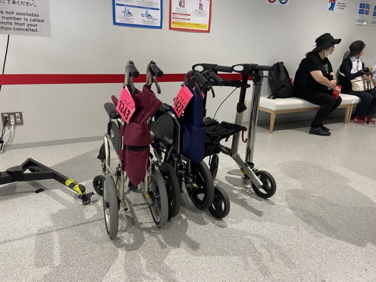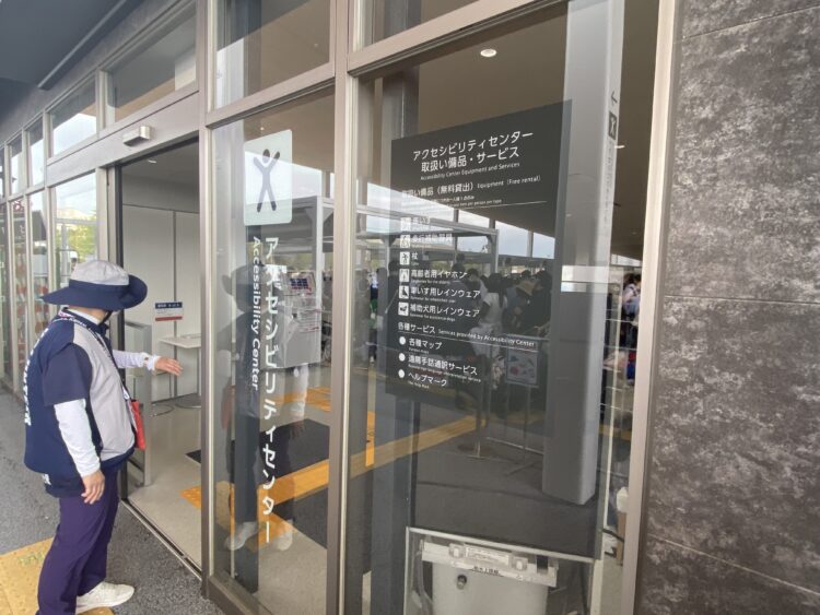 実はアクセシビリティセンターで歩行補助器や車イスを借りて、帰りに返却したら優先出口から