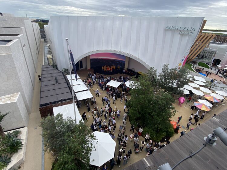 リング外には関西パビリオンと大阪ヘルスケアパビリオン。
