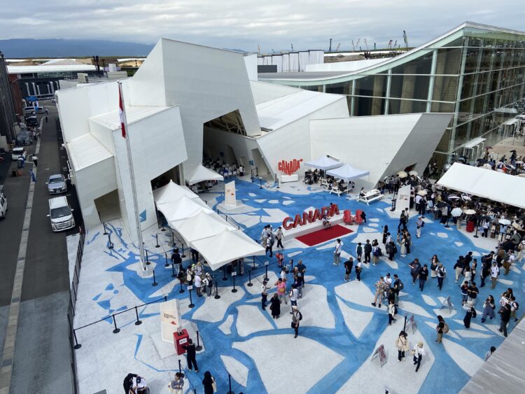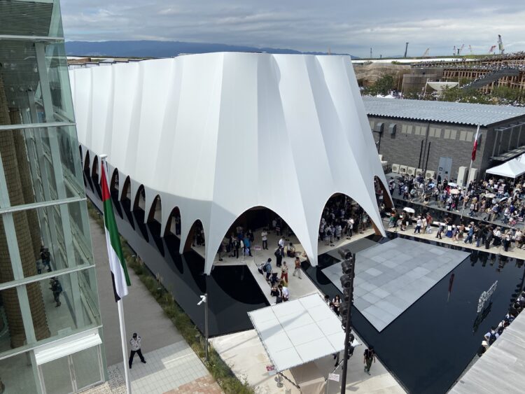 ブロックを積み重ねたような白いパビリオンは英国。