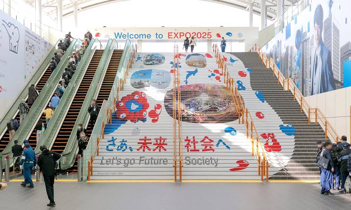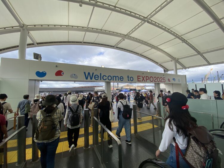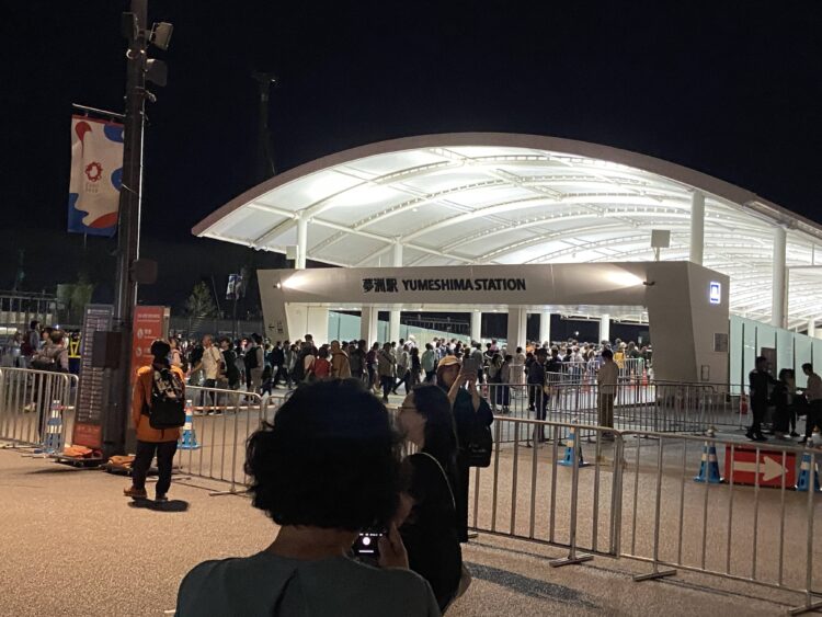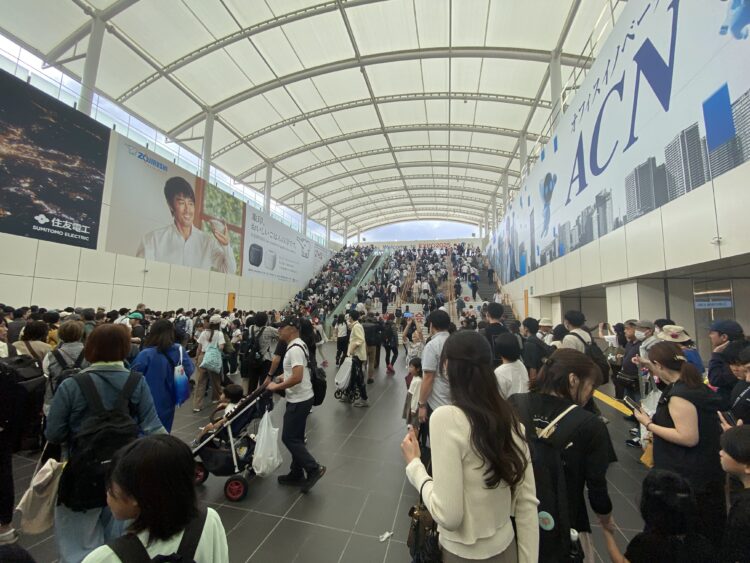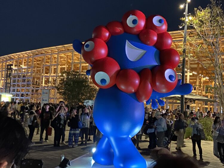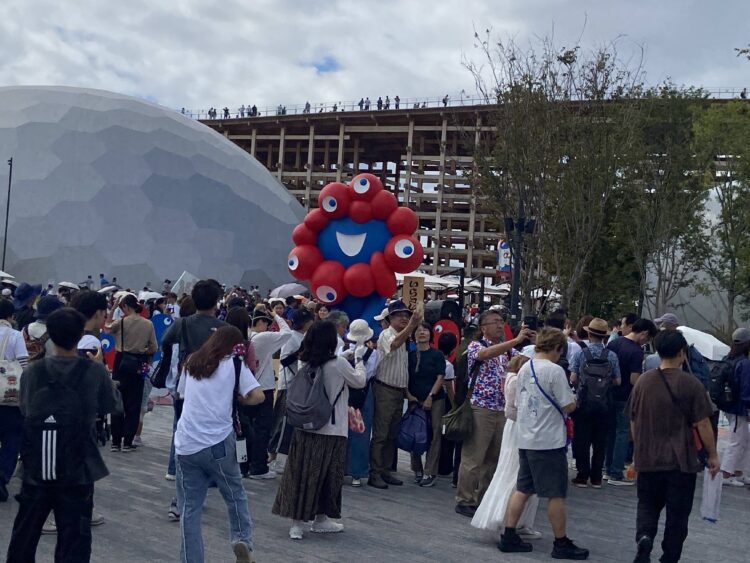 最初のころは空いていて、ミャクミャクの階段アートが見られましたが、終盤は大混雑になりました。