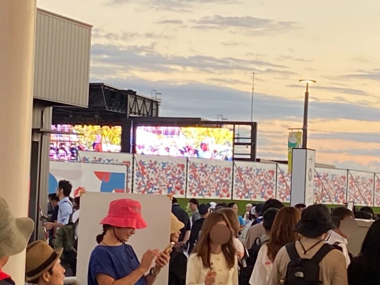 アリーナの外ですが、コブクロの「この地球の続きを」を合唱し終わったタイミングで万博thanks花火😄