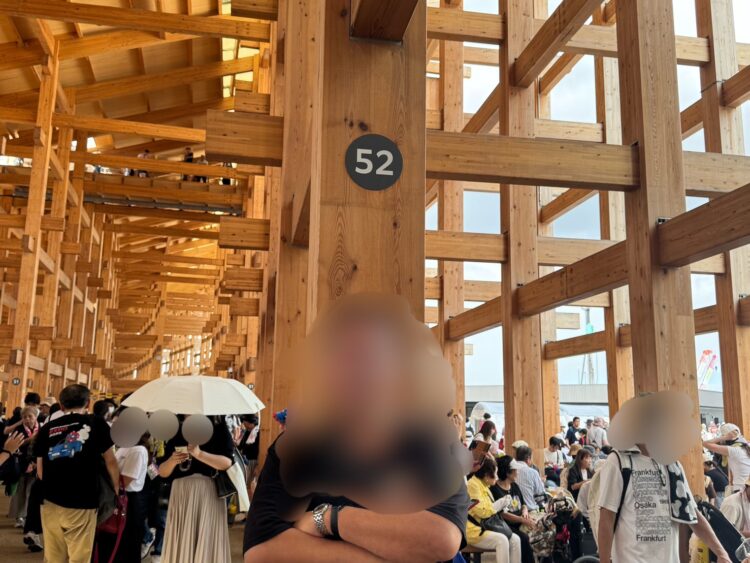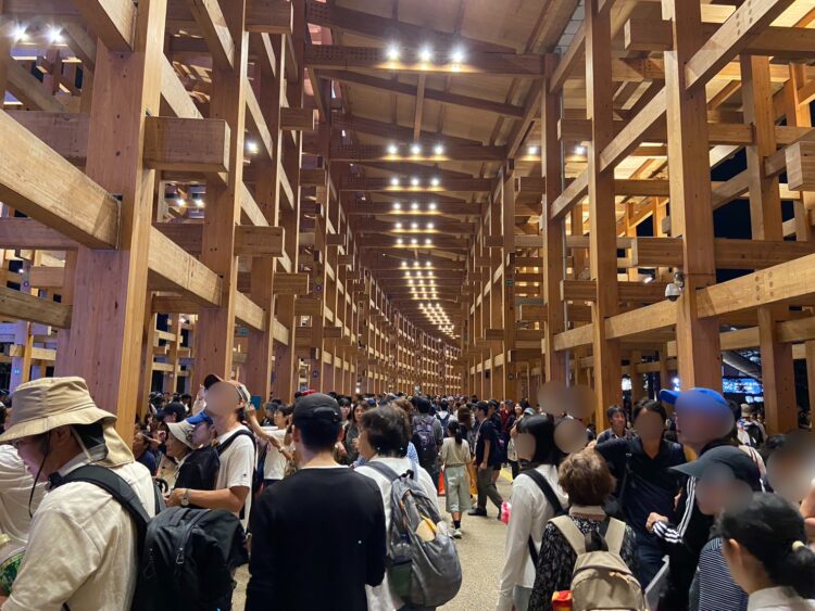 見た目も圧倒的にすごいけど、清水寺の舞台と同じ作りで日本の伝統文化を伝えていたり、リングの内側に全ての海外パビリオンをギュっと集めてたり、夏の酷暑からみんなを守ってくれたり、「いのち輝く未来社会のデザイン」の象徴的建物でした。