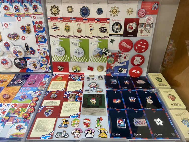 ミャクミャクのほかにも、ドイツのサーキュラーちゃん、アメリカのスパーク、イタリアのイタリアちゃん、オーストラリアのココちゃん、オーストリアのアカシロアカちゃん、ナウルパビリオンのナウルくん、バルトのバラビなど。
