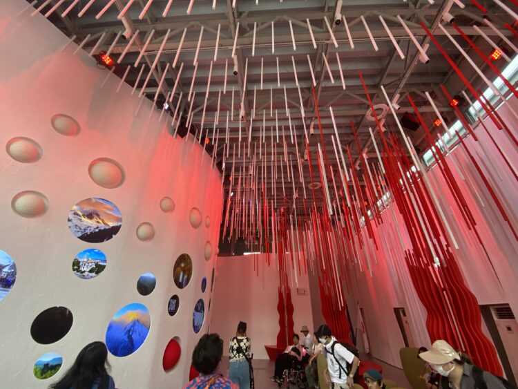 何人かずつのグループで入れ替えていくスタイル。(赤い球体はとなりのシンガポール)