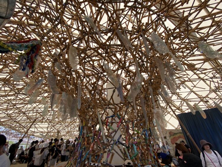 それぞれには来場者が書いたメッセージがつけられていて、日を追うごとに希望や夢が積み重なっていきます。