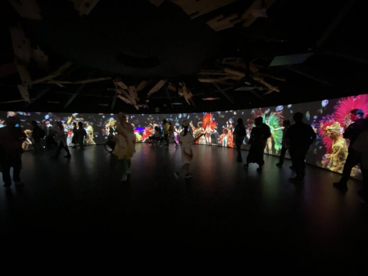 まずほの暗く落ち着いた空間へ。自然や水の音に囲まれながら、自分自身と向き合うような静かな時間が流れます。