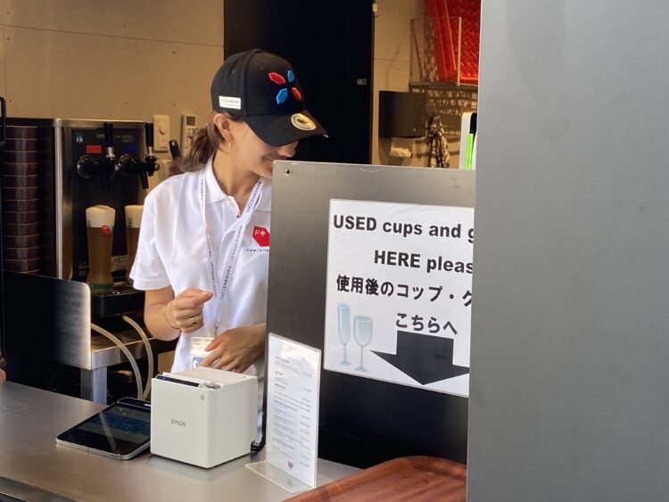 最初、停止になっていて、大屋根リングの下で待っていると、しばらくして開放。