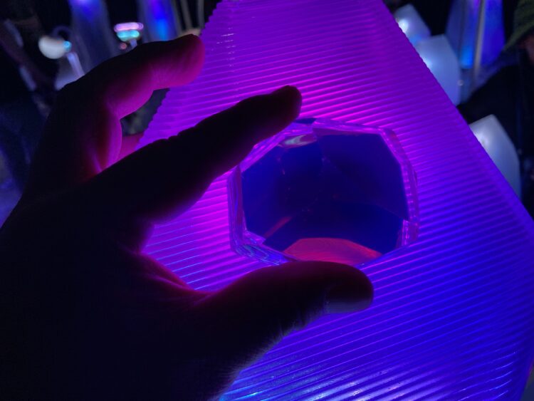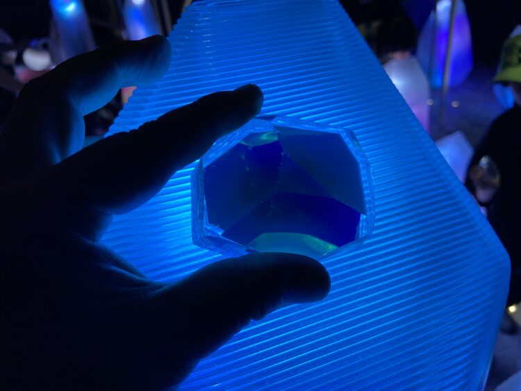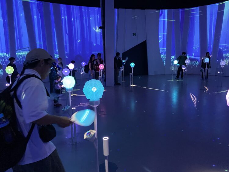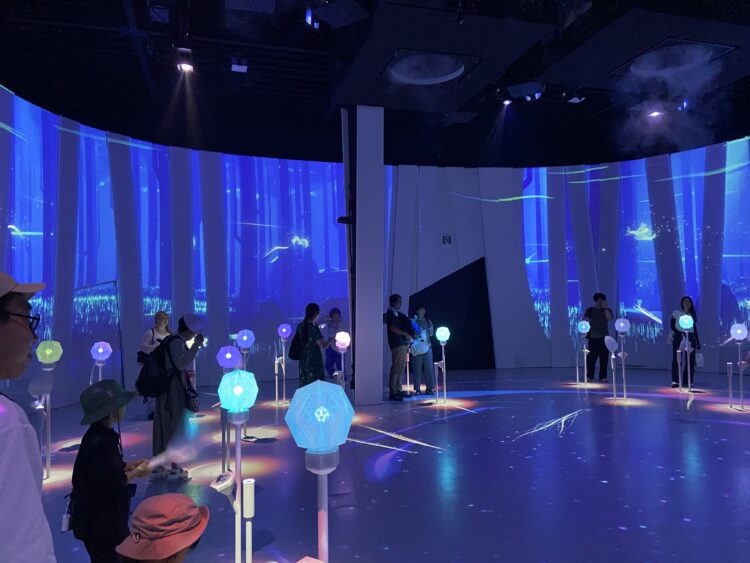 「ノモの国」では、結晶(デバイス)を手に、立体音響と空間映像に包まれた未知の知覚体験や、巨大な滝状のミストウォールを潜り抜けたりと思いのまま冒険をしながら、これまで気づかなかった自分自身の可能性に気づかせてくれる体験ができます。