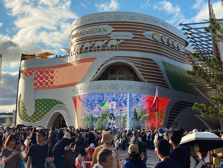 外観がド派手で印象的なトルクメニスタンパビリオン。