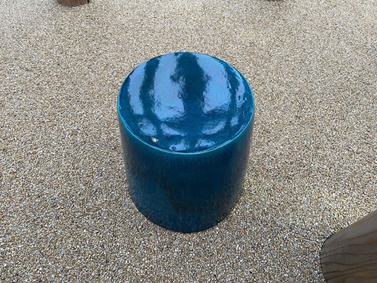 ウズベキスタンのモスクのカラー「ターコイズブルー」の陶器製スツールは、1つずつ職人さんが手づくりらしいです。